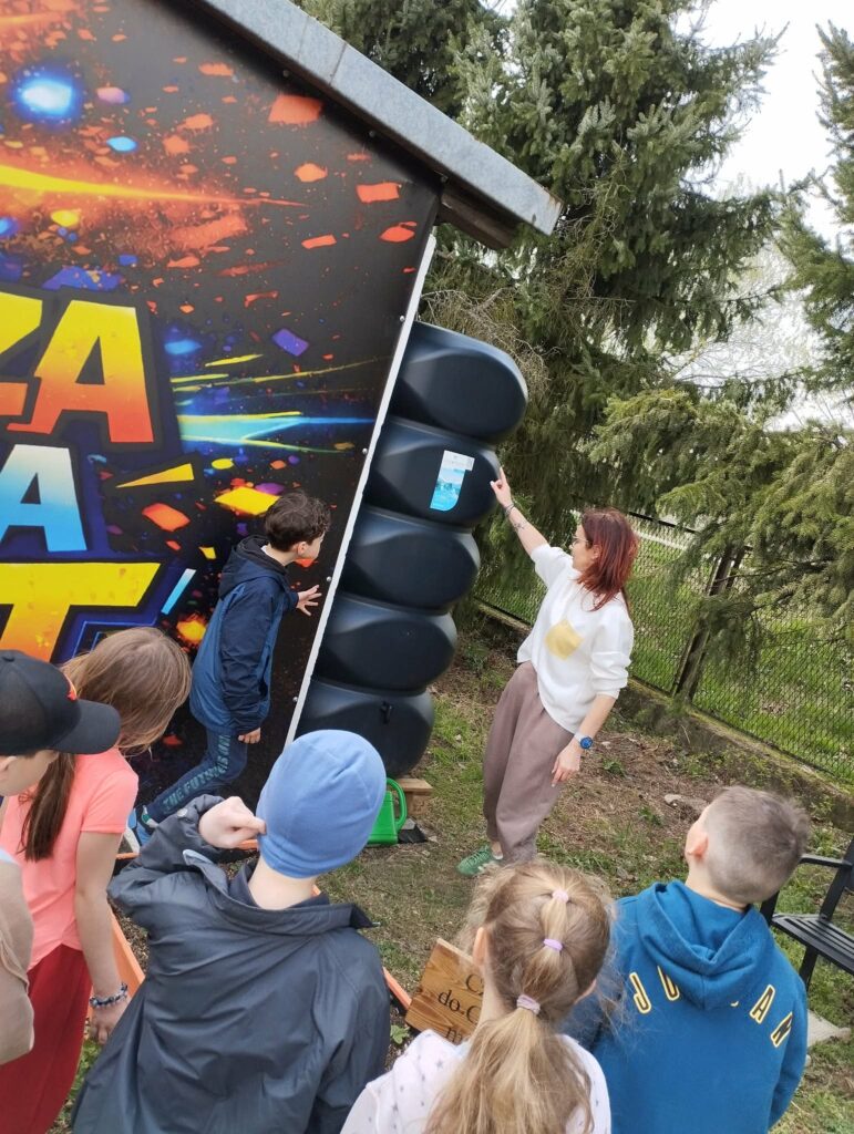Ale to nie wszystko – w realizację projektu włączyła się Gmina i Miasto Dobczyce, która podarowała do naszego ekozakątka zbiornik na deszczówkę, dzięki czemu dbając o nasz ogród będziemy dodatkowo mogli zgłębić tajniki obiegu wody w przyrodzie!
