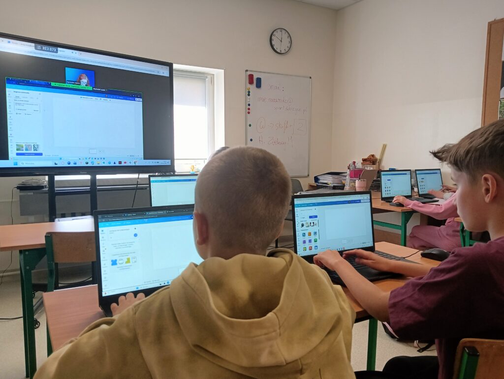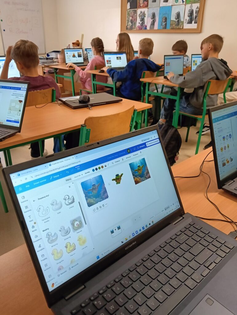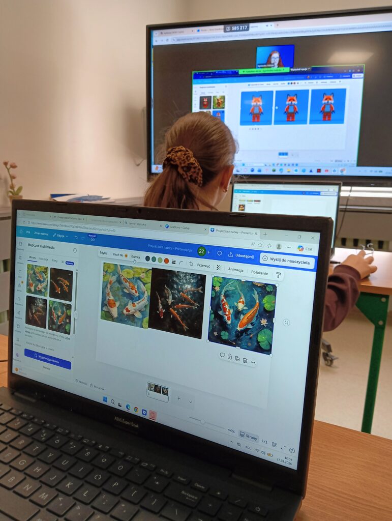 Uczniowie klasy 4b wzięli udział w inspirującej lekcji informatyki online w formie webinaru, podczas którego odkrywali możliwości programu Canva ✨
